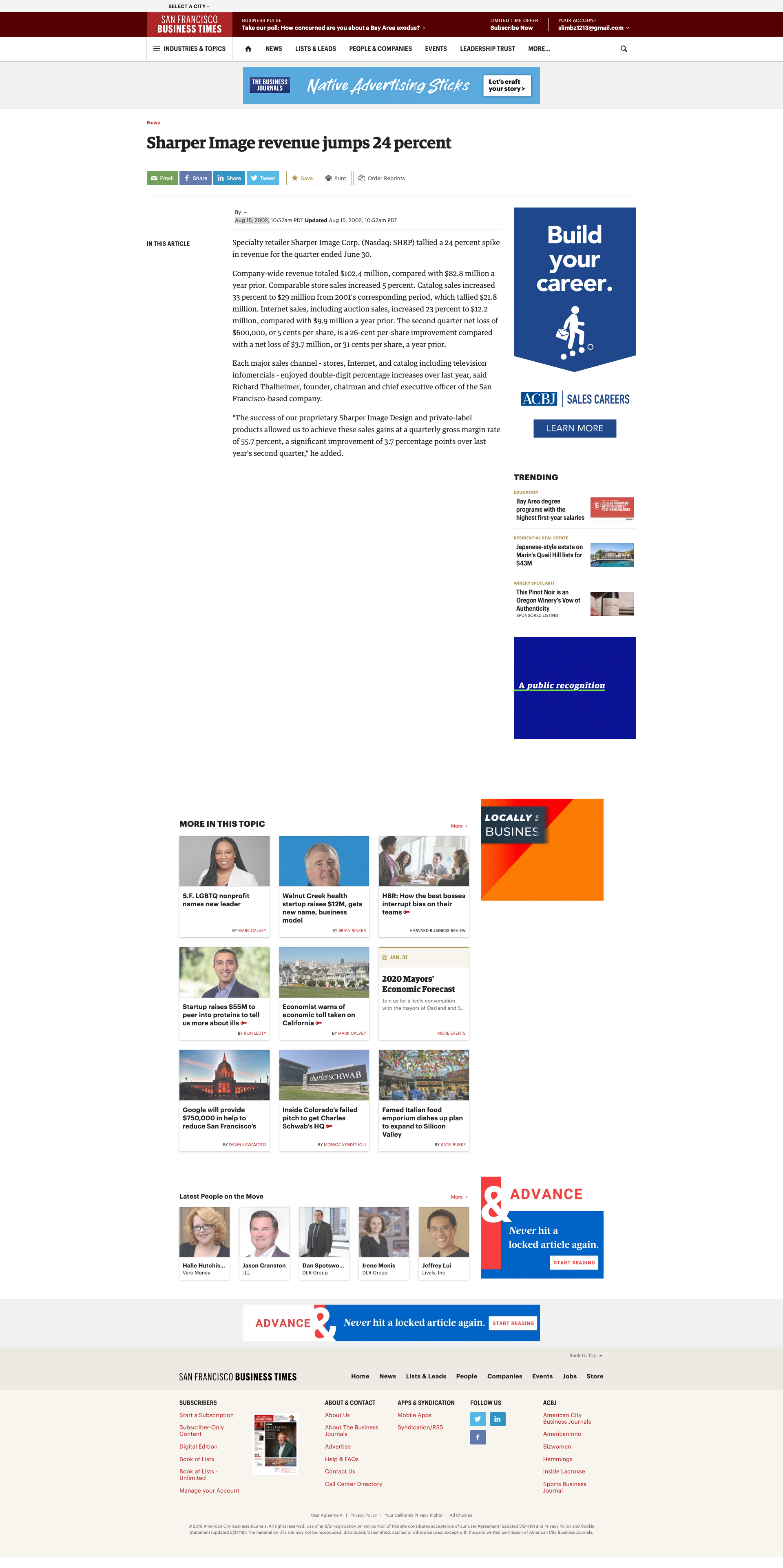 Each major sales channel – stores, Internet, and catalog including television infomercials – enjoyed double-digit percentage increases over last year, said Richard Thalheimer, founder, chairman and chief executive officer of the San Francisco-based company.